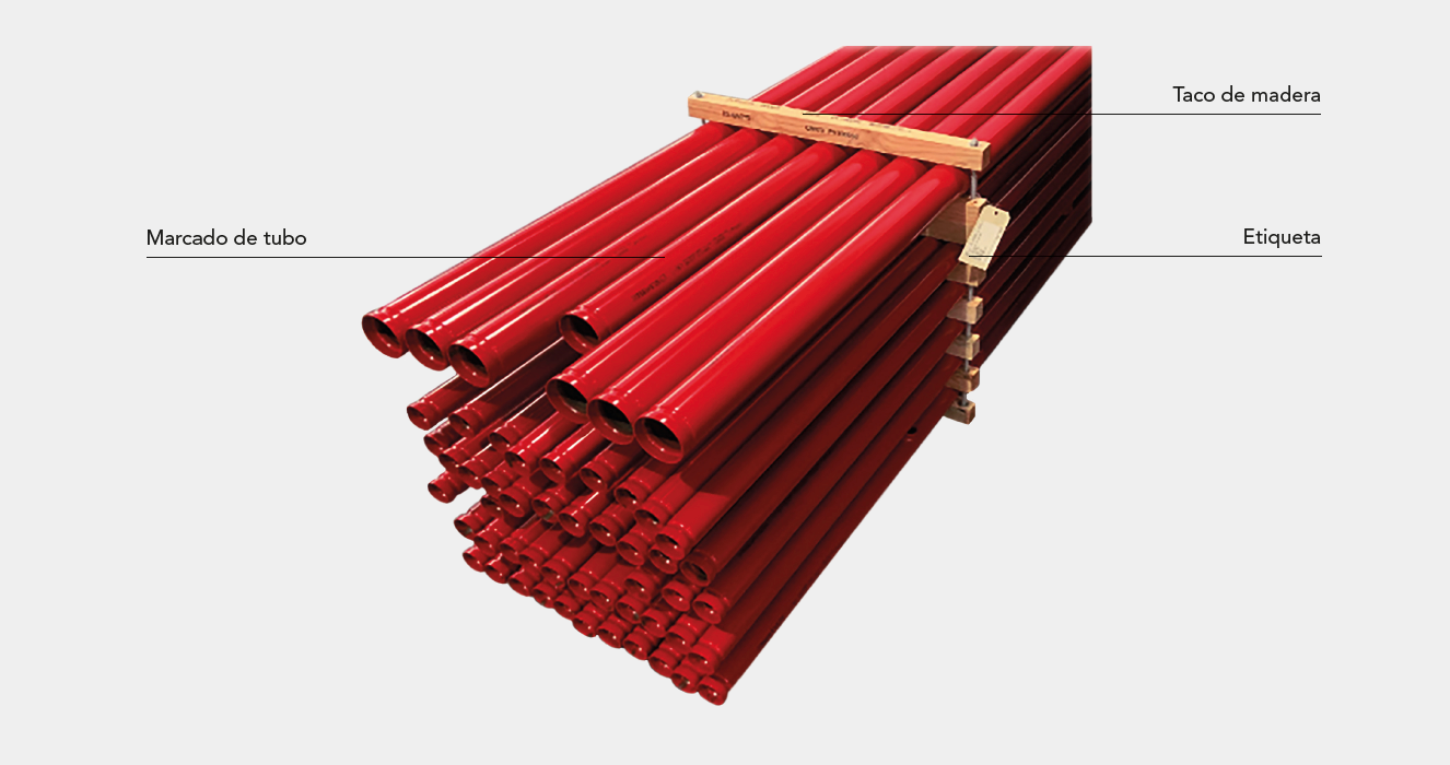 Tanto los paquetes como la tubería se almacenarán en una superficie plana y estable.